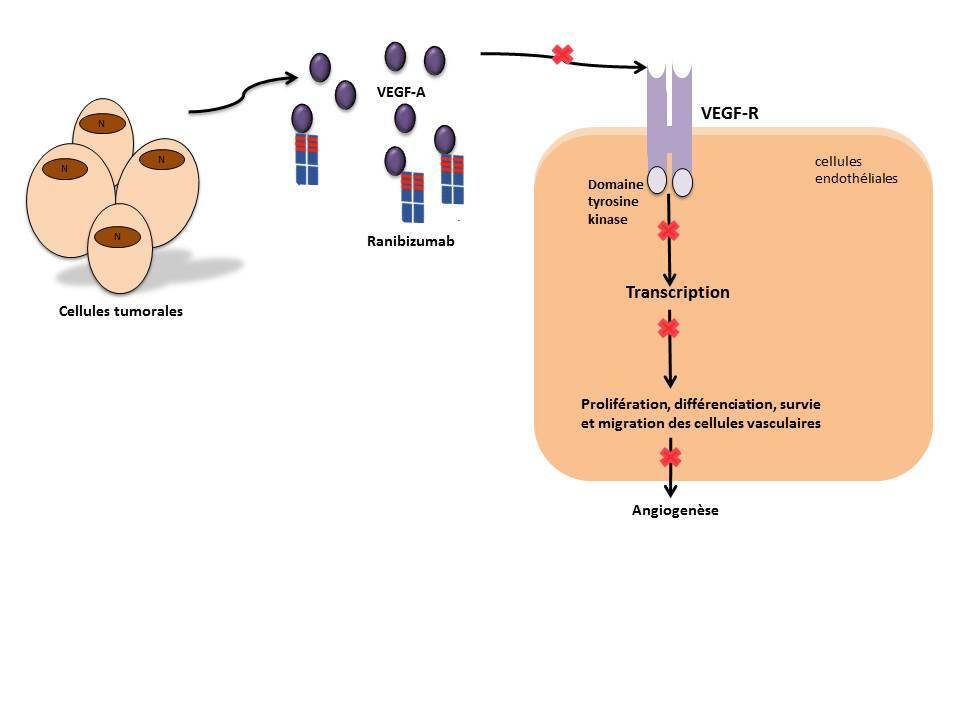 - Cible: VEGF (vascular endothelial growth factor)