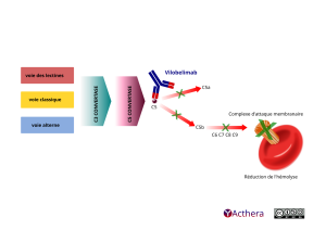 Visuel du mécanisme d'action de l'anticorps monoclonal chimérique Vilobelimab.